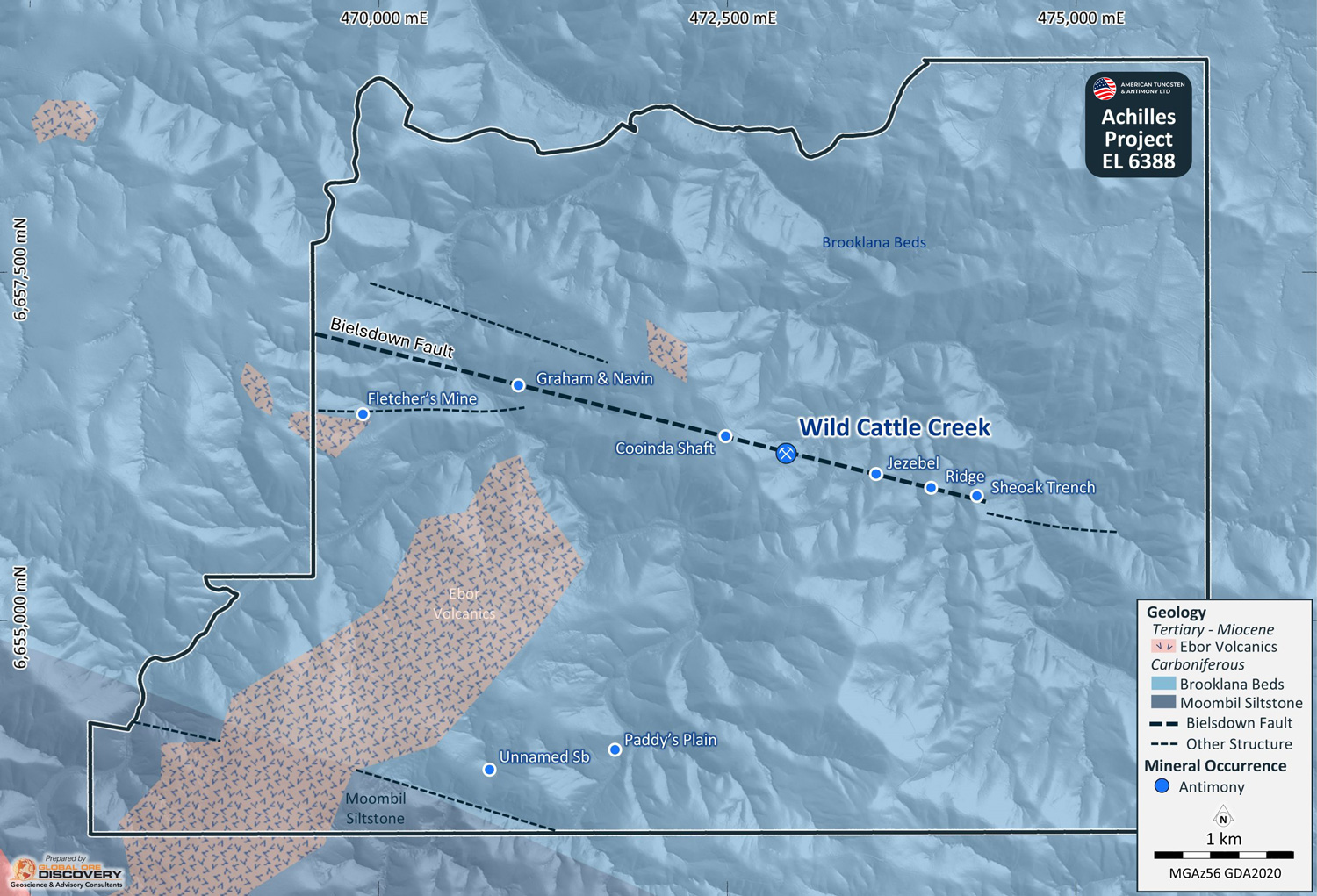 The Achilles Project presents strong exploration potential, with mineralisation spatially associated with the Bielsdown Fault, a key structural corridor. Notably, antimony and tungsten grades increase towards the western margin of current drilling, where mineralisation remains open, highlighting a significant resource expansion opportunity.