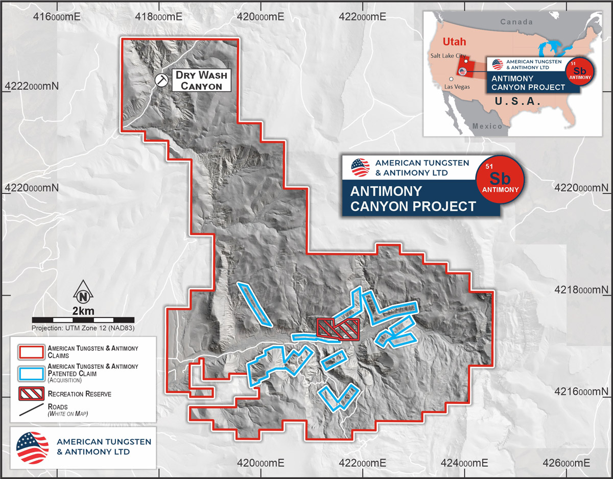 What this means: Patented claims are private land. American Tungsten and Antimony own both the mineral and surface rights outright, removing the need for federal land leases and the delays that come with them.
