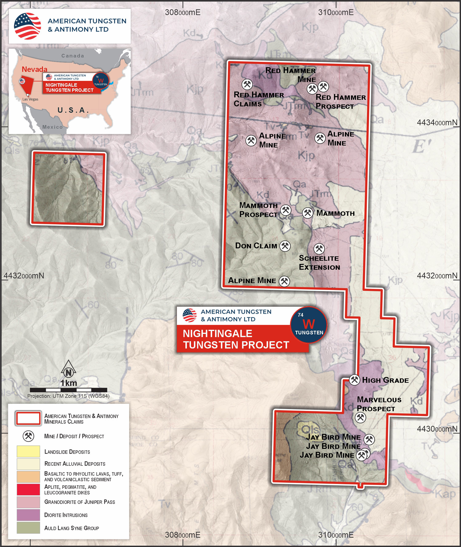 The Nightingale Project is a district-scale tungsten exploration opportunity in the historic Nightingale Mining District, Pershing County, Nevada, USA.